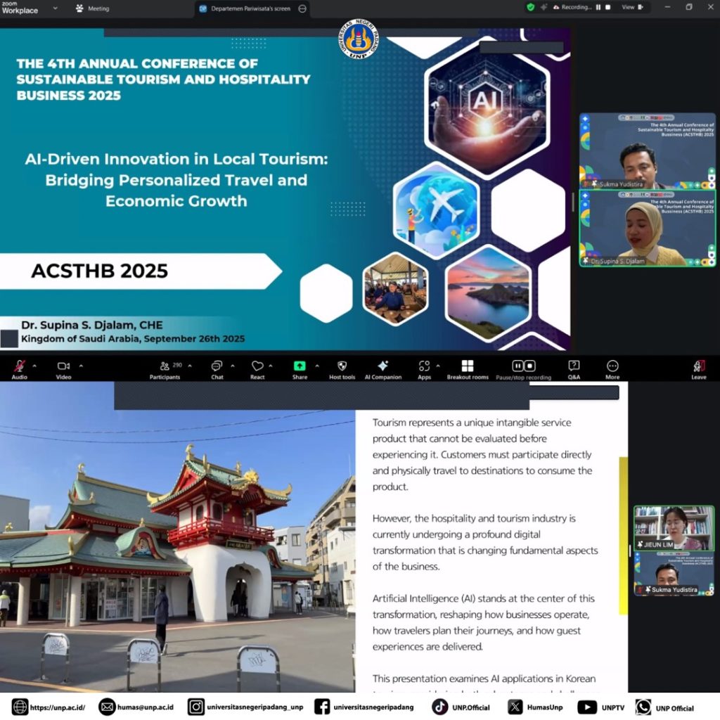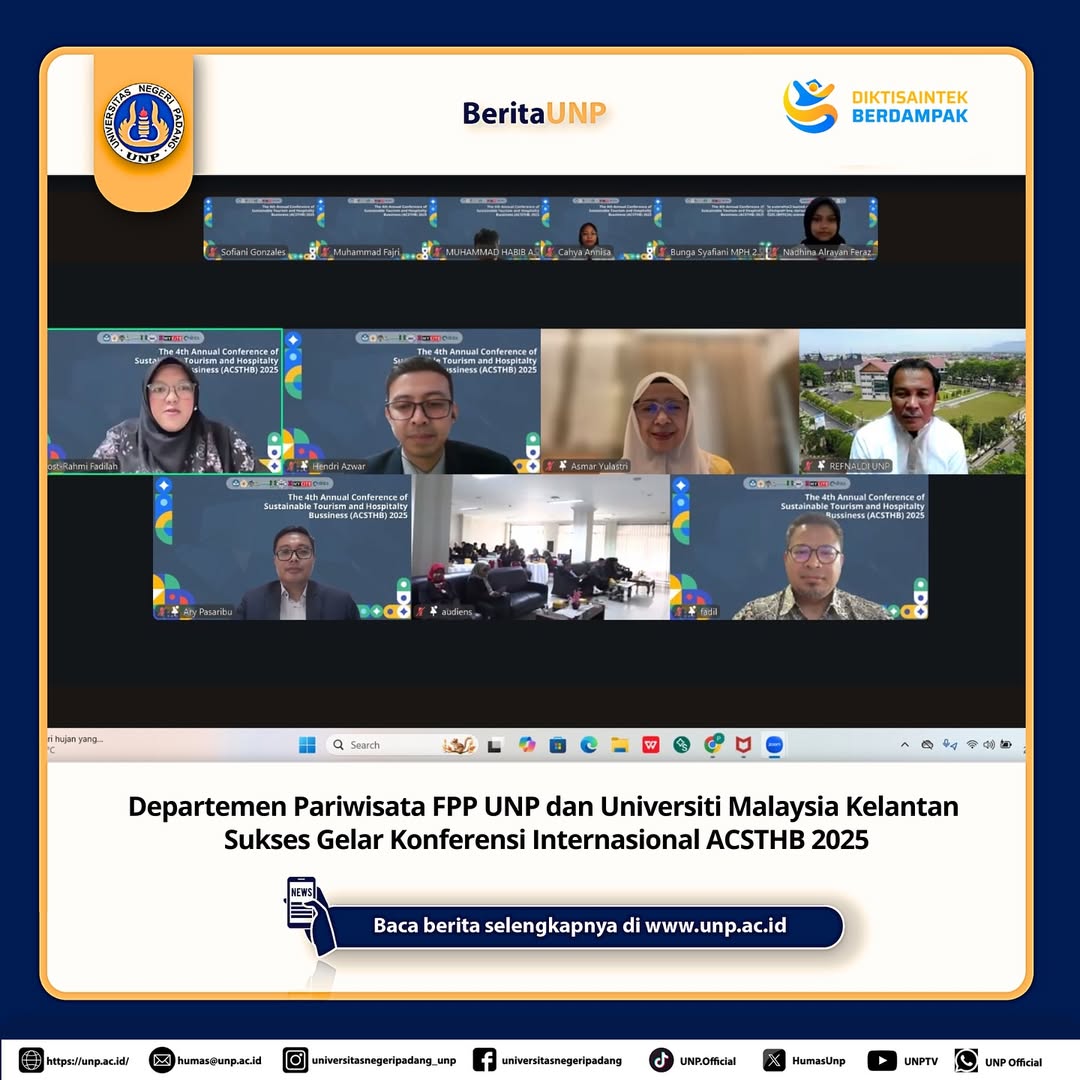 Padang – Departemen Pariwisata, Fakultas Pariwisata dan Perhotelan (FPP) Universitas Negeri Padang (UNP) bersama Universiti Malaysia Kelantan sukses menggelar The 4th Annual Conference of Sustainable Tourism and Hospitality Business (ACSTHB) pada 26 September 2025 di Ruang Serba Guna FPP UNP.