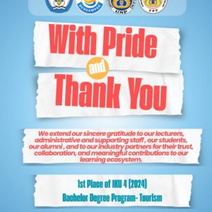 Selamat atas perolehan prestasi internal Universitas Negeri Padang pada perolehan Indikator Kinerja Utama terbaik untuk Program Studi D4 Manajemen Perhotelan & S1 Pariwisata