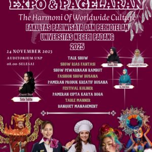Padang — Mahasiswa Departemen Pariwisata Fakultas Pariwisata dan Perhotelan Universitas Negeri Padang (FPP UNP) mendapat kepercayaan sebagai Event Organizer (EO) dalam penyelenggaraan Expo dan Pagelaran FPP UNP 2025 yang mengusung tema “The Harmony…